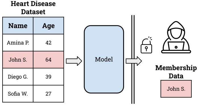 Privacy has become a crucial area of research in TAI as models increasingly use personal information for training, leading to growing concerns about privacy breaches and unauthorized data access. In ML, privacy concerns are usually demonstrated adversarially, where an attacker tries to extract as much information as possible from the model’s training set. The standard example is a membership inference attack (MIA) in which the attacker tries to determine if a test datapoint was part of the model’s training dataset.