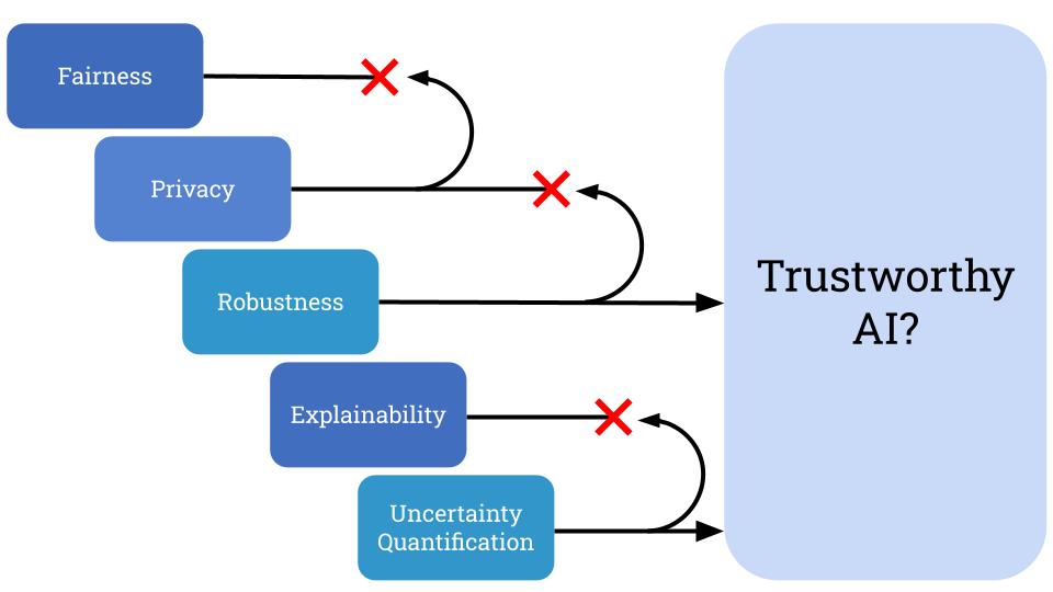 Artificial intelligence (AI) systems have become widespread as consumer tools for productivity, and increasingly as autonomous agents that can interact with our digital world. It is incredibly important that these tools are built to be aligned with human values, which is the overall goal of the field of research known as Trustworthy AI (TAI). Chief among the tenets of TAI are fairness, privacy, robustness, explainability, and uncertainty quantification — each of which is a noble pursuit, but all of which must be harmonized to promote deep trust. The ultimate goal of TAI is to achieve these aspects simultaneously.